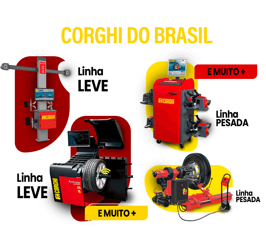 A Corghi preza por ser a companhia líder mundial em tecnologia, design, produção, comercialização e assistência. Equipamentos que atendem montadoras, especialistas em pneus, auto center e oficinas, oferecendo uma linha completa de produtos de excelentes qualidade.